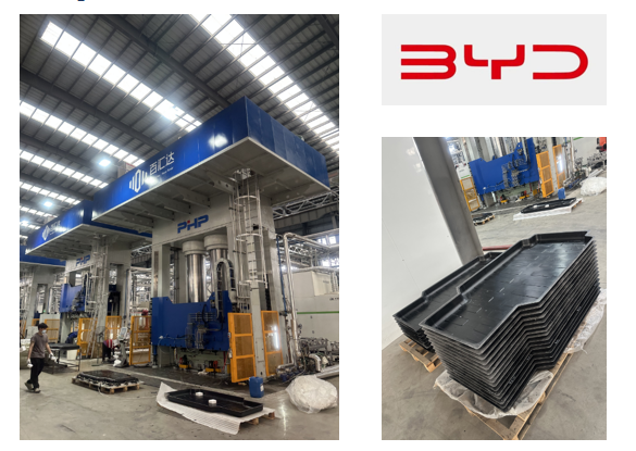 In addition, the molding cycle is short (3-5 minutes per piece), and it supports fully automatic production line, with an annual capacity of 50,000-70,000 pieces. The 1000ton PCM molding press produced by PHP has served BYD and other car companies.