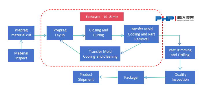The PCM servo compression molding press is a high-precision composite forming machine driven by a servo motor. Its working principle involves placing the pre-formed prepreg material into a heated mold. The PCM press then rapidly closes the mold, builds pressure, enables fast curing of the prepreg, and finally opens the mold for part removal. It is a specialized hydraulic system designed for efficient and stable composite molding.